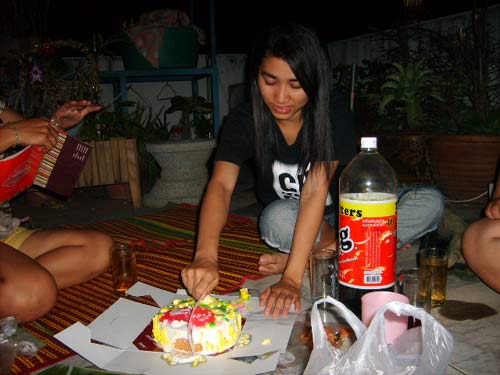 ได้เวลา ทำพิธีตัดเค้กกันแล้ว โฮ ท่าตัดเค้กเพิ่น ยังกะนางงาม