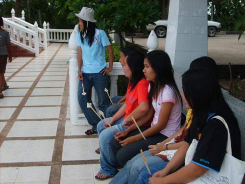 ที่แท้ก็มาให้อาหารปลา และให้อาหารตัวเองด้วย (แอบกินของปลา)แต่ดูท่าทางของต่ายแล้ว เอ ให้อาหารปลา หรือ ชี้หนุ่มๆที่อยู่ฝั่งตรงข้ามกันแน่หนอ
